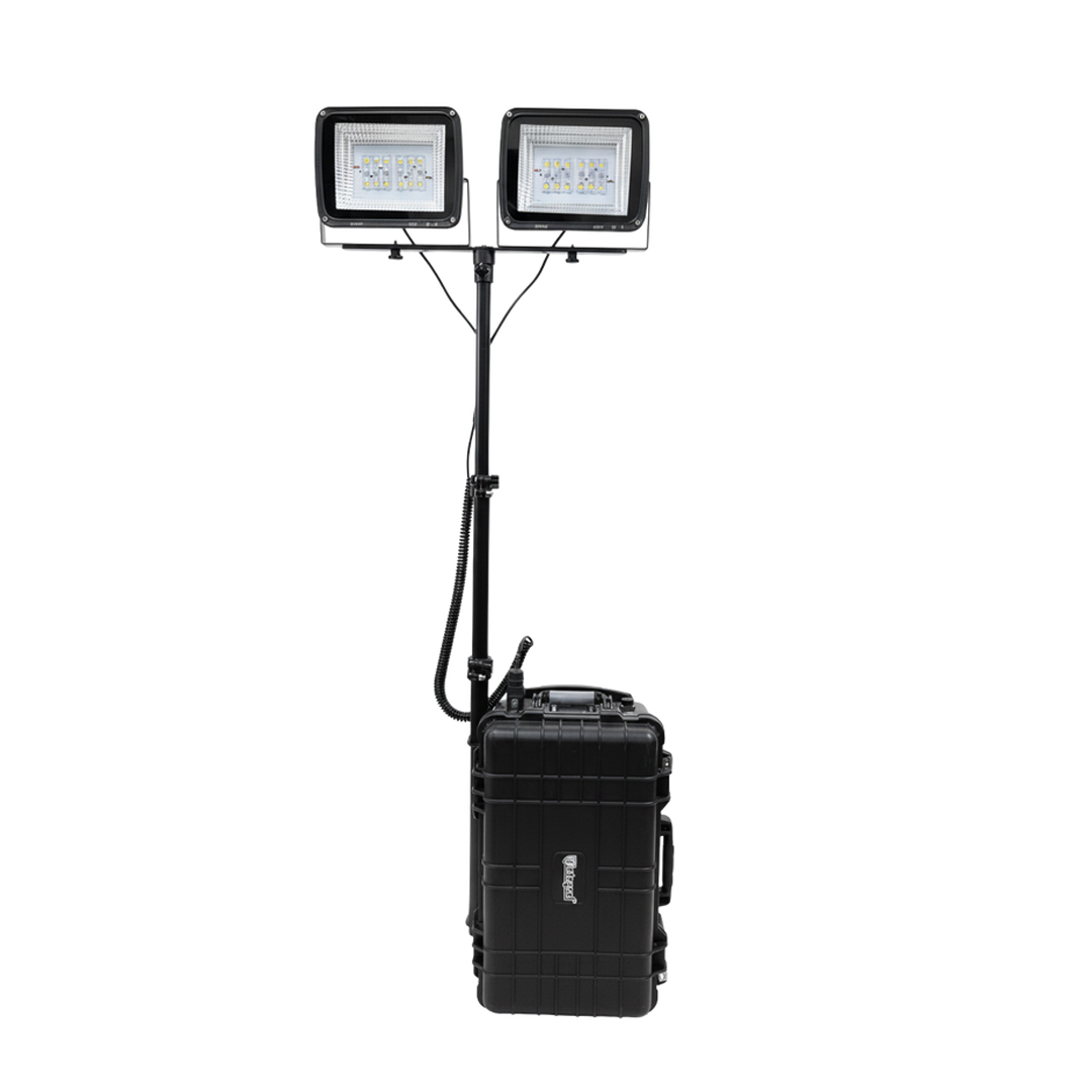 This Portable Light System is a compact, all-in-one solution that fits neatly into a single rugged suitcase for effortless transport and setup. Despite its small size, it delivers powerful illumination with dual high-lumen LED heads and multiple brightness levels. Designed for tough environments, it offers waterproof protection, long-lasting lithium-ion battery power, and quick deployment—making it the perfect blend of portability and performance.